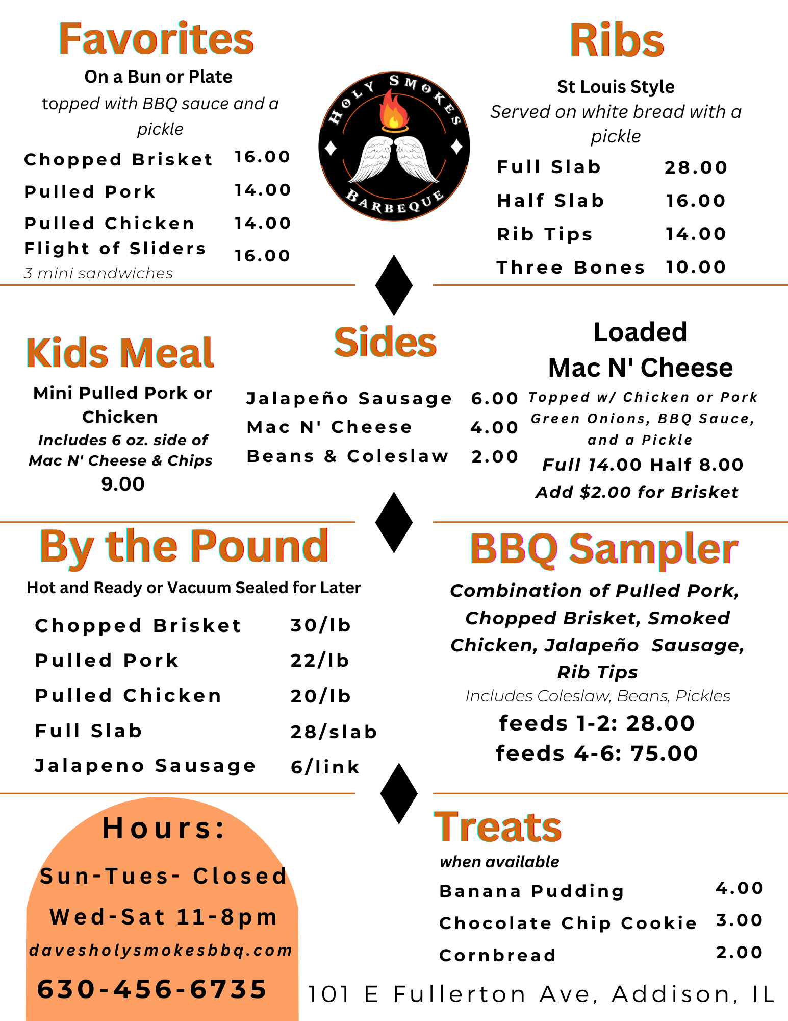 Call for Pick-Up orders- 630 456 6735